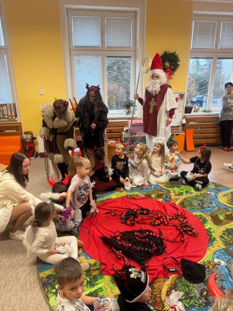 V pátek 5.prosince navštívil sv.Mikuláš se svou družinou děti ve školce. Ty mu zazpívaly písničku, řekly básničku a on je všechny obdaroval...slíbil, že příští rok přijde zas...