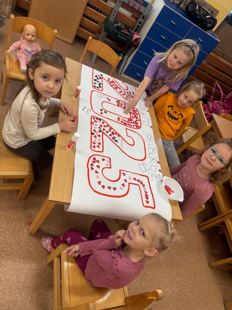 Děti ze školky se podílely na výrobě poutače na danou akci, citlivě na příběhu kočičí rodiny byly seznámeny s problémem, který může nastat a jak jej lze řešit.