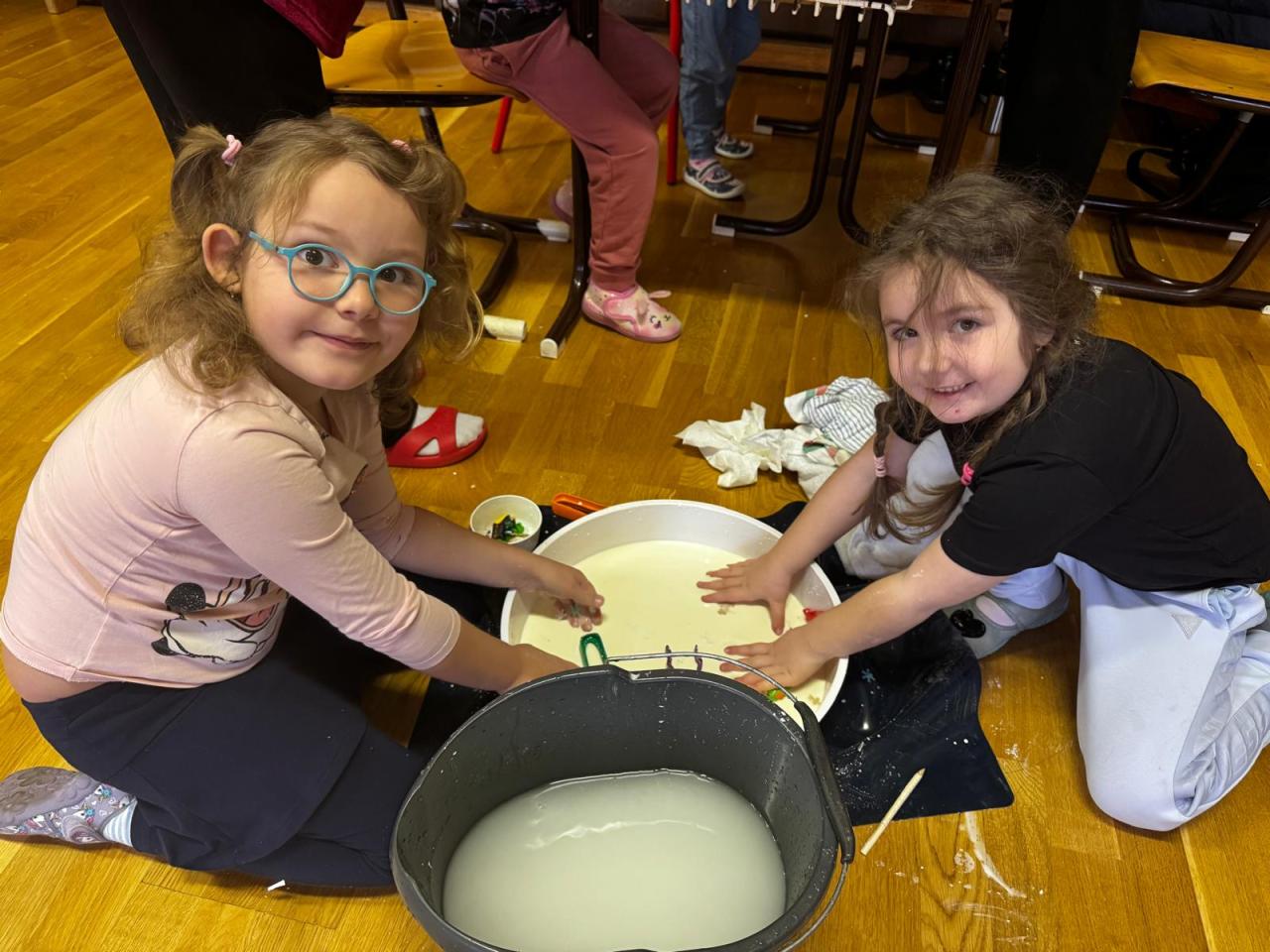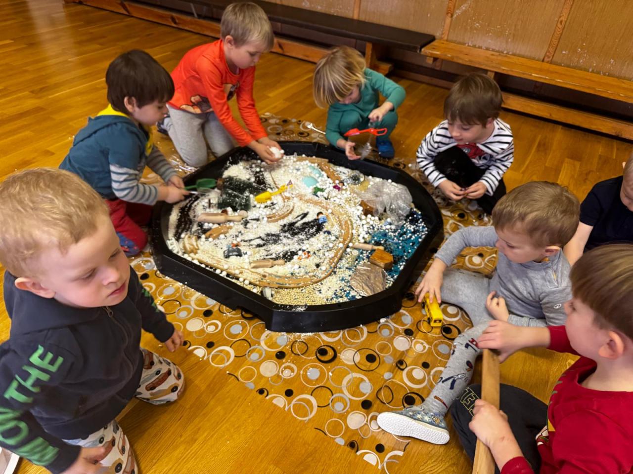 V rámci smyslohraní se zaměřili na zimní aktivity, které děti zaujaly a obohatily jejich zážitky. Věnovali jsme se technikám jako je tekutý sníh, stavba iglů z kostek cukru, chytání ryb pomocí magnetu a tvorba eskymáka. Děti stavěly koleje v nastrouhaném polystyrénuházely papírové koule na pomyslnou ledovou kru nebo stavěly sněhuláky z mamolíny. Tyto netradiční materiály a pomůcky budou děti moci využívat i po zbytek školního roku, což posílí jejich kreativitu a radost z práce. Věříme, že tyto aktivity přispějí k rozvoji jejich dovedností a zájmu o zimní tématiku.