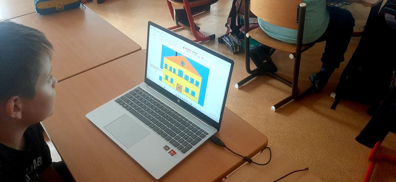 V hodinách informatiky se žáci 4. a 5. třídy aktivně zapojují do výuky, kde propojují informatiku, výtvarnou výchovu a přírodovědu.